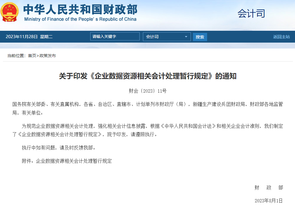 制定《暂行规定》,进一步规范引导企业强化数据资源相关信息披露,将有助于有关各方更好了解企业数据资源相关情况,为有关监管部门完善数字经济治理体系、加强宏观管理提供会计信息支撑,也为投资者等报表使用者了解企业数据资源价值、提升决策效率提供有用信息。