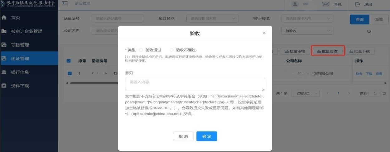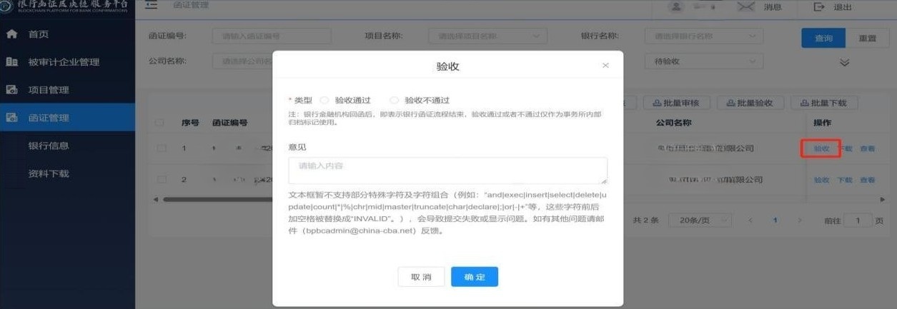 (3)问:银行函证区块链服务平台函证状态显示“待验收”,经办人员应如何处理才能收到函证(见图67)?