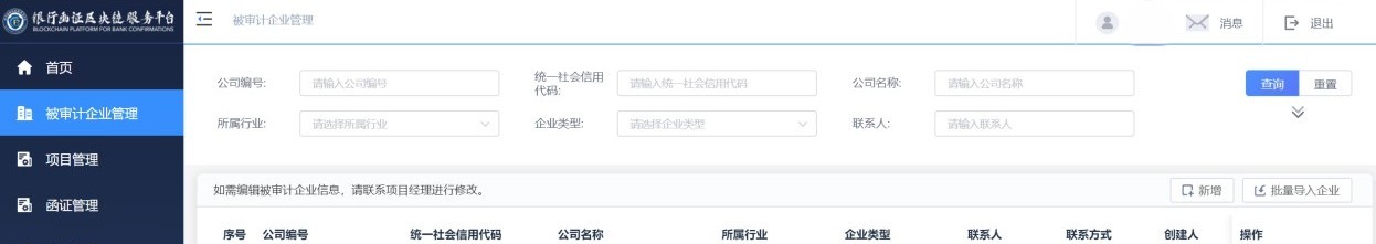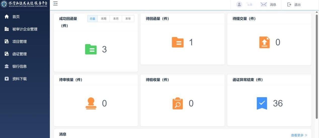 1、银行函证区块链服务平台暂未开放注册入口,目前是审核制。 目前机构接入平台有B/S和API两种方式: B/S是网页版本,接入平台后会给机构分配管理员账号密码,需要完成全部流程才可以登录网页使用。 API是技术版本,需要会计师事务所自建函证系统,通过接口进行技术对接,实现接入平台,需要完成全部流程才可以使用。
