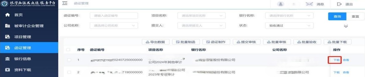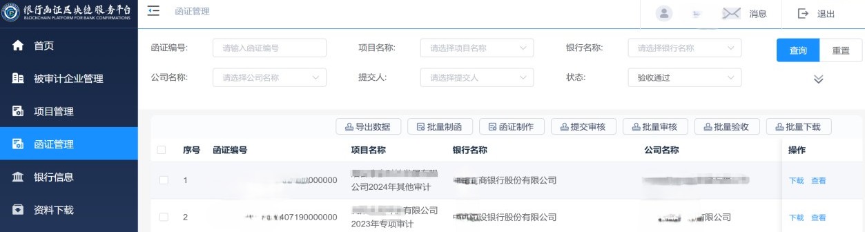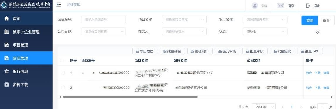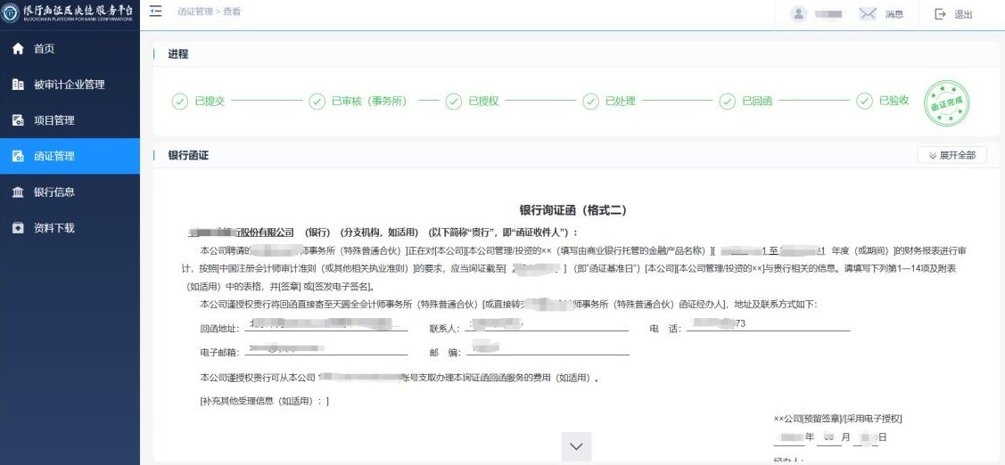 可以BS对接,或API对接,具体操作请咨询贵所IT、银行函证区块链服务平台IT。
