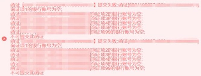 (7)如遇参数校验不通过的报错提示,请根据详细的错误描述重新填写EXCEL文件后再次发函。