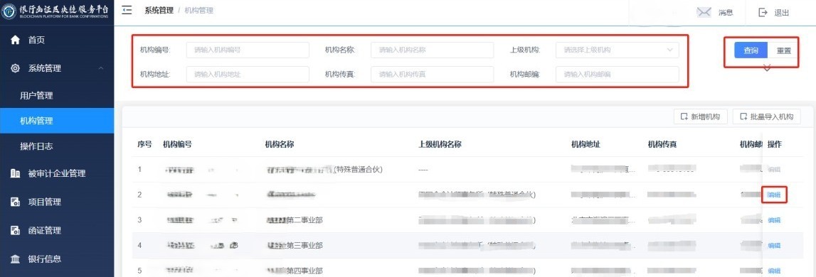 (2)用户填写所有必填项,点击“提交”按钮,系统校验填写信息是否正确,若填写信息存在错误,系统提示报错。若填写信息正确,系统将信息保存成功,且自动返回至机构管理列表界面。