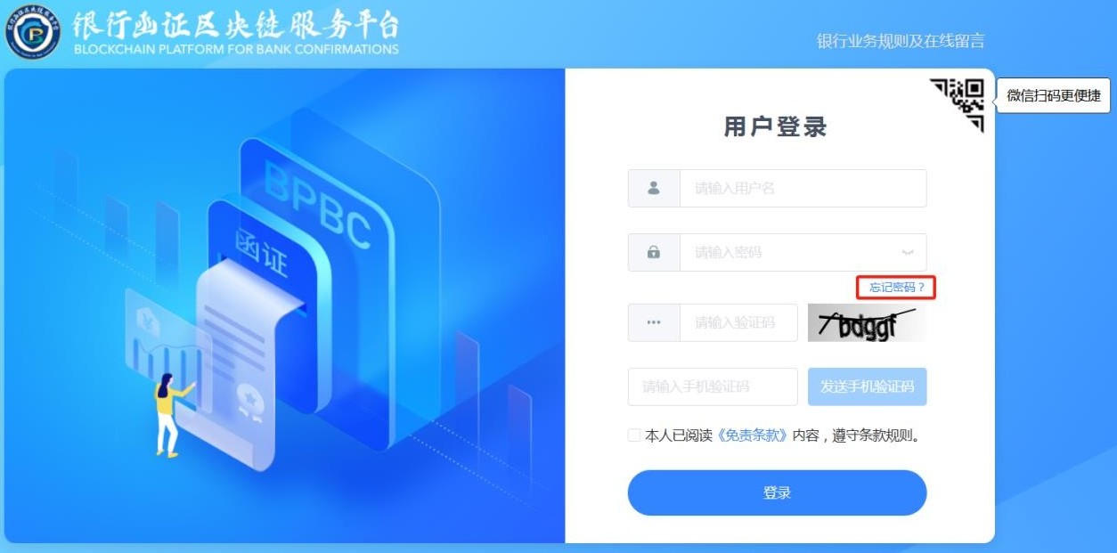 图8 微信登录页面——银行业务规则及在线留言按钮