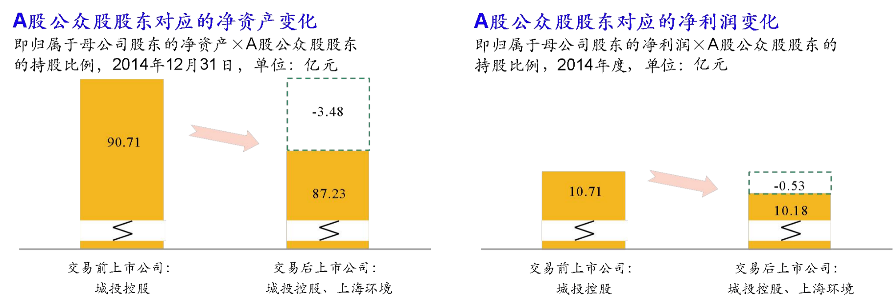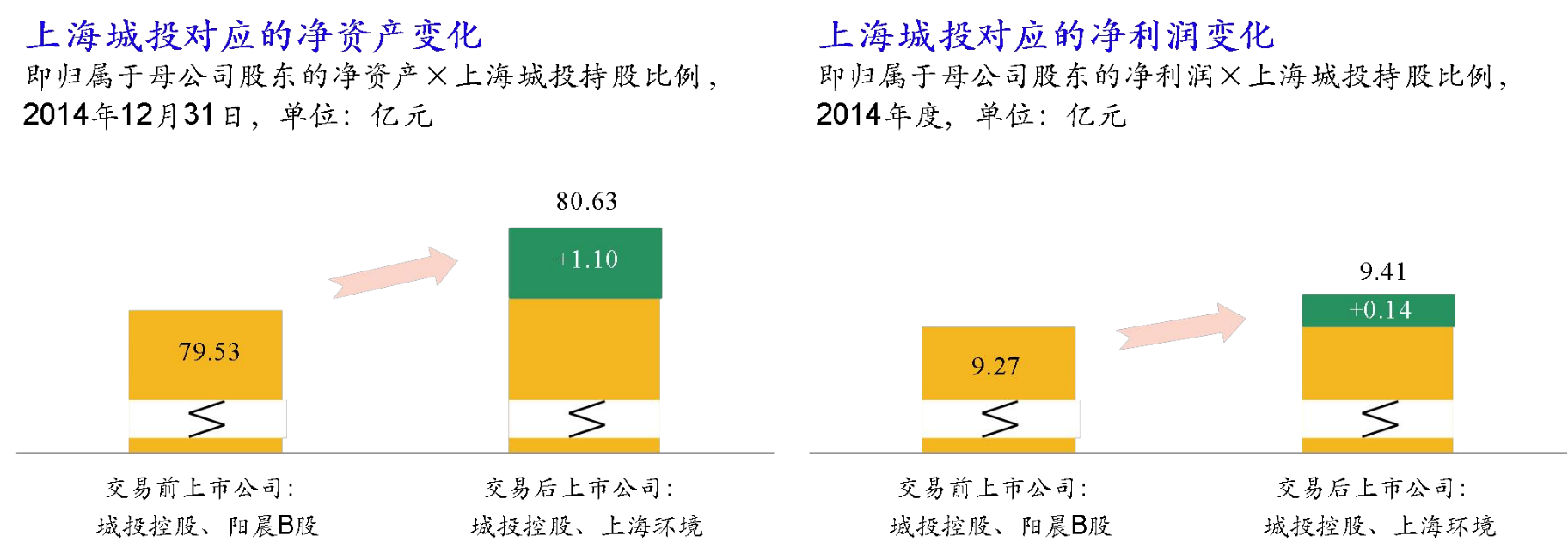 另一方面,从市值角度出发,本次重组后,原城投控股股东将同时持有城投控股、上海环境两家A股上市公司股份,在持股总数不变的情况下,由于环境板块估值显著高于房地产板块,原先受制于城投控股房地产业务而被低估的环境业务将在上海环境分立上市后迎来价值释放,经过市场调整,股东在分立后的城投控股、上海环境中享有的市值将超过本次重组前在城投控股中享有的市值,对于原城投控股A股股东而言无疑是一大利好。