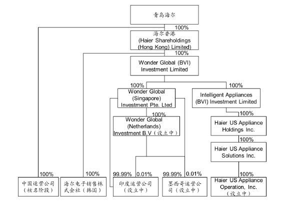 公司通过其香港全资子公司海尔香港在美国、荷兰、新加坡、印度、韩国、BVI等国家和地区设立公司,用于承接本次交易的相关资产。