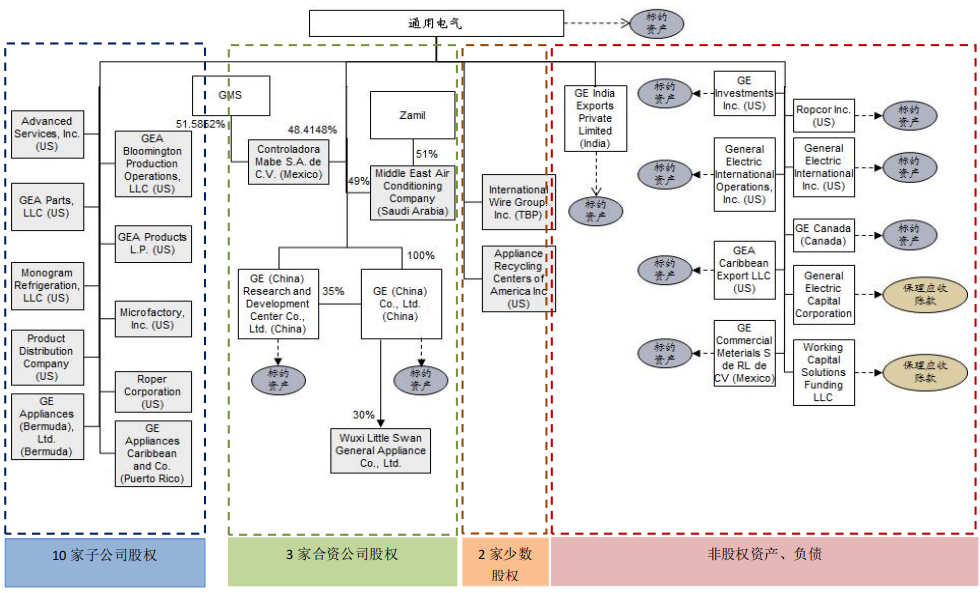 通用电气及其子公司持有的非股权资产系上述交易标的的主要组成部分,包括不动产、主要生产设备、办公设备、存货、与经营相关的应收应付款项、相关知识产权、其他与业务有关的资产等,其业务范围涵盖厨电产品、制冷产品、洗衣产品、洗碗机和家庭护理产品五大类型,为消费者提供约30种不同类别、数千款不同型号的领先家用电器产品及其相关的配套服务。