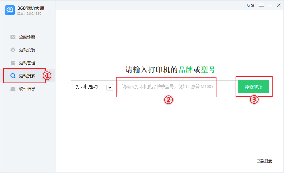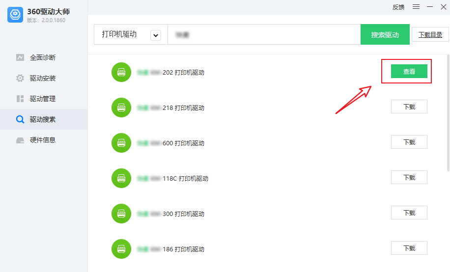 【360驱动大师】驱动搜索 2023-1-13 14:16 | 1,449 | 0 | 软件教程 95 字 | 1 分钟内 1. 下载安装360驱动大师 点击下载 2. 搜索驱动 操作步骤:输入打印机的品牌或型号 → 搜索驱动 → 找的哦啊对应品牌的驱动 → 下载。 3. 安装驱动 操作步骤:查看,定位到下载好的驱动安装包 → 解压 → 双击安装。 赞赏