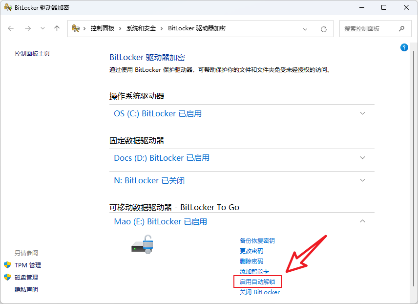 在电脑上,插入已加密U盘(或移动硬盘)。