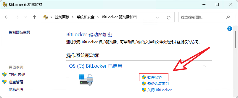 定位到需要暂停保护的驱动器 → 点击 暂停保护 。