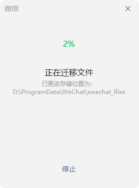 经过上述步骤,“微信”就会自动开始迁移缓存文件……