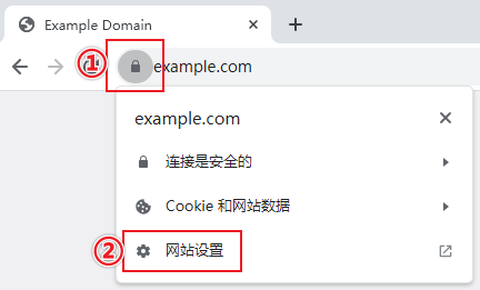 (1)浏览器地址栏的🔒(锁状按钮) → 网站设置;