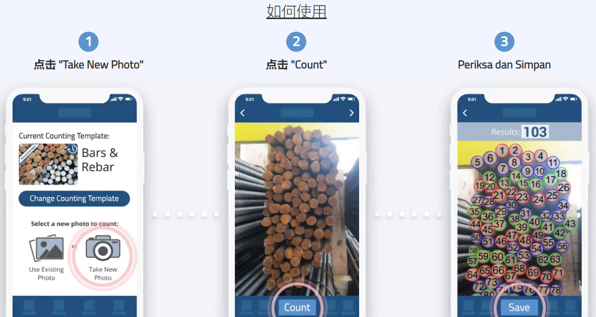 《数钢管》是一个可以为您自动统计照片中的条状物数量的APP。