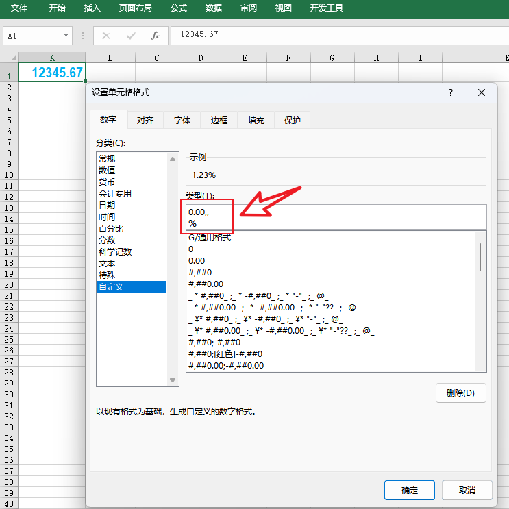 !):在小数点(.)前加移位符(!)即可以达到移位,“0!.0,”即为带1位小数的万,“0!.0,,”即为带一位小数的千万……