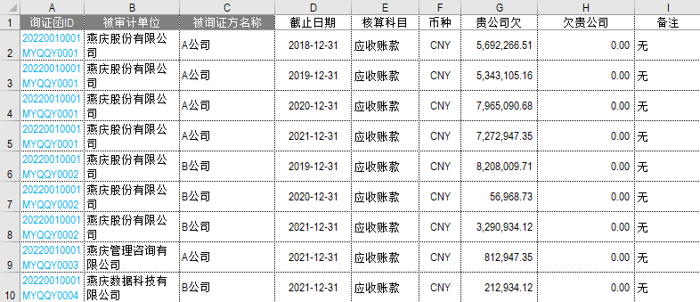 打开询证函模板,在《函证信息xx》表中填列数据。