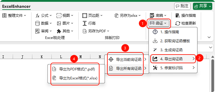 操作步骤:ExcelEnhancer → 函证… → 3.生成询证函。