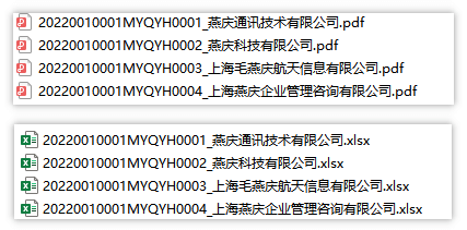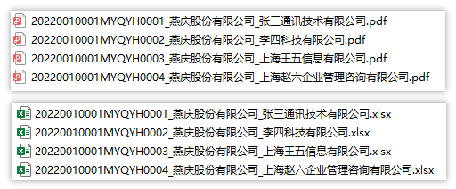 本功能导出的每封询证函的名称是从《目录》工作表取数的,命名规则为取B列字段内容+C列字段内容组成“函证编号_被函证方.pdf/xlsx”格式的名称。