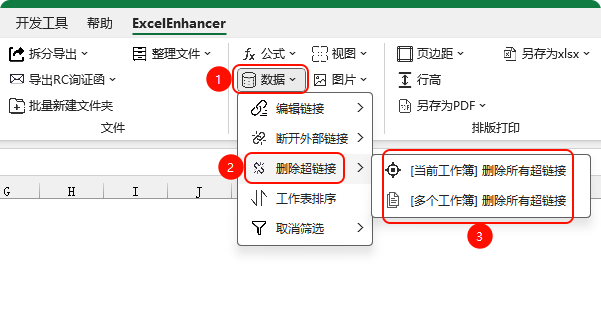 ExcelEnhancer → 数据 → 删除超链接 → ……