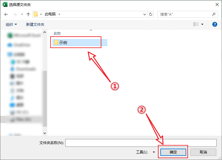 按提示,选择所需提取文件名的文件夹 → 确定;
