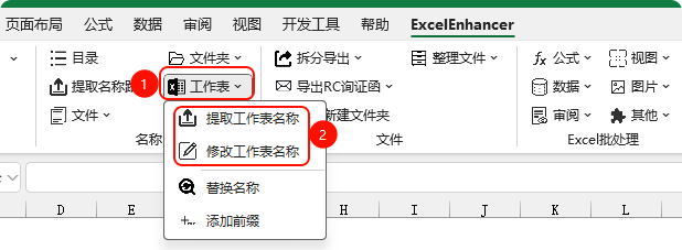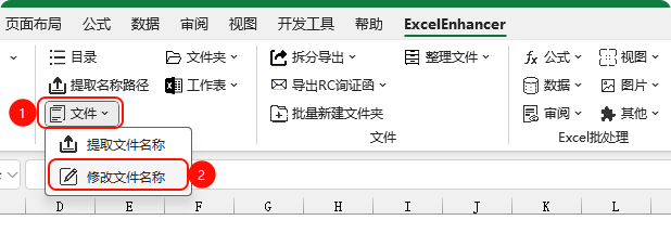 ExcelEnhancer → 文件 → 修改文件名名称。
