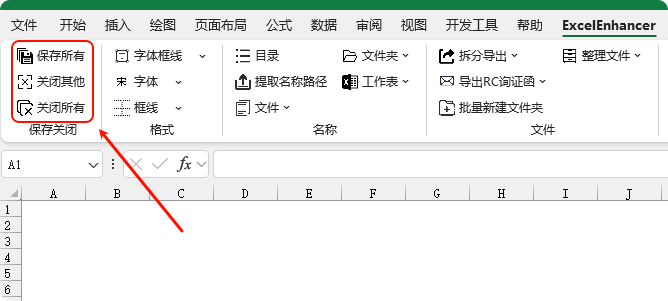 - 保存所有: 一键保存所有已打开的Excel工作簿;
