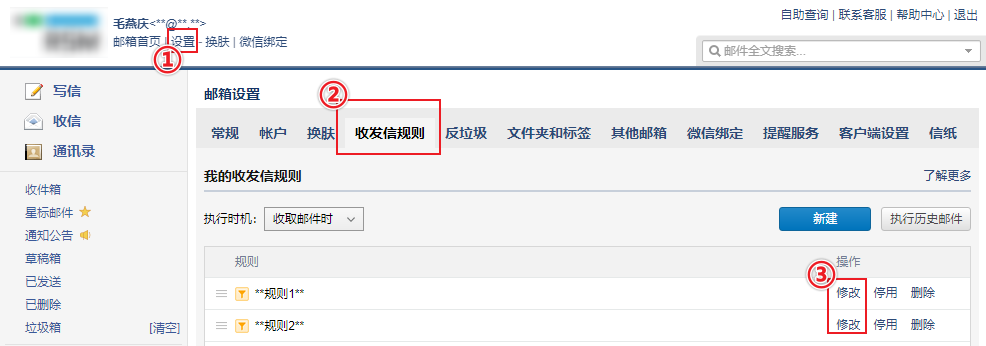 【腾讯企业邮箱】如何修改收发信规则? 2023-6-07 8:41 | 2,597 | 0 | 软件教程 70 字 | 几秒读完 1. 登录网页版邮箱 (1)打开企业邮箱网址:https://exmail.qq.com/login (2)使用手机微信扫码登录 2. 修改收发信规则 设置 → 收发信规则 → 选择需要删除的项目,点击 修改 赞赏 腾讯企业邮箱