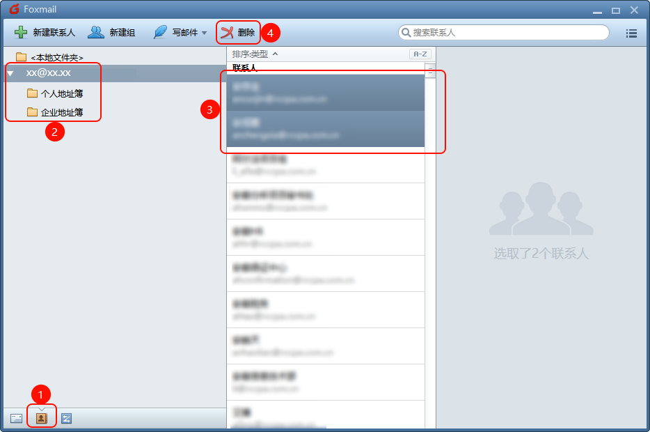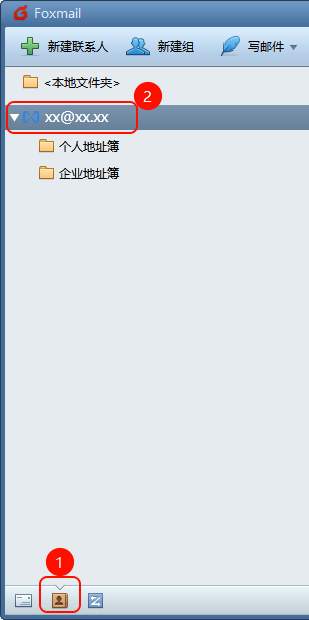 在 Foxmail 中,点击通讯录图标(),然后选择需要导入通讯录的邮箱账号。