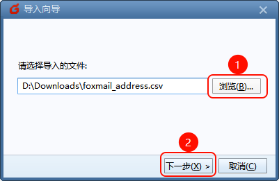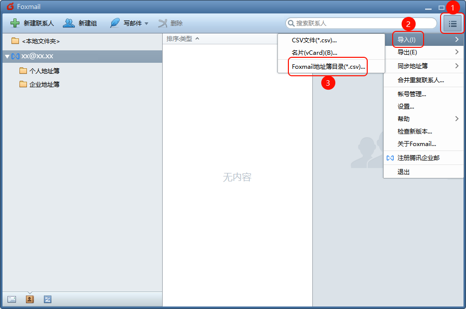 选项() → 导入 → Foxmail地址簿目录(*.csv)...。
