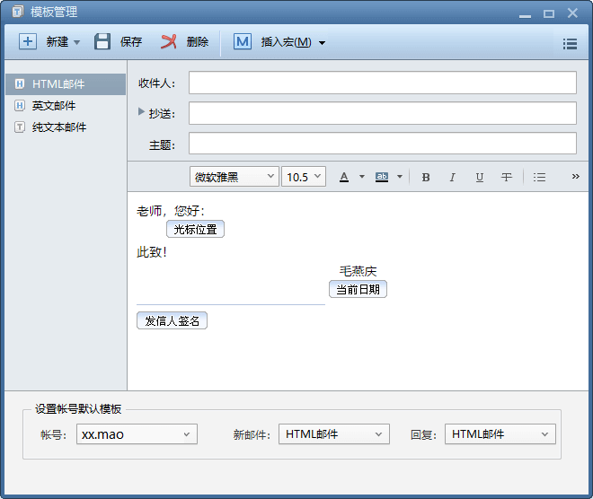 word版邮件签名模板; - 或者,可以直接拷贝其他人给您发来的邮件中的落款处