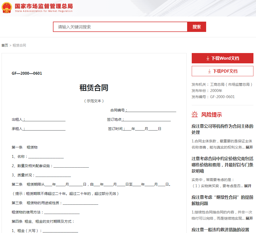 合同示范文本库,收集了市场监管部门制定发布的合同示范文本,供社会公众查阅下载。