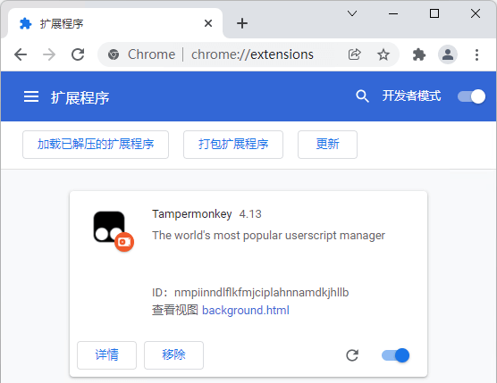 下文以Tampermonkey为例,演示如何以开发者模式离线安装Chrome扩展。