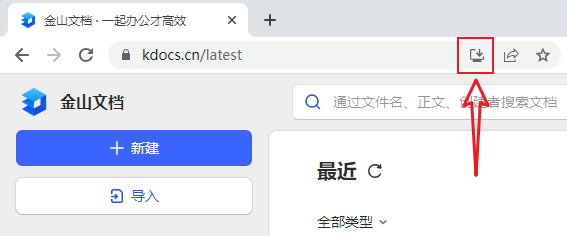 在Edge浏览器中,打开金山文档链接:https://www.kdocs.cn/latest