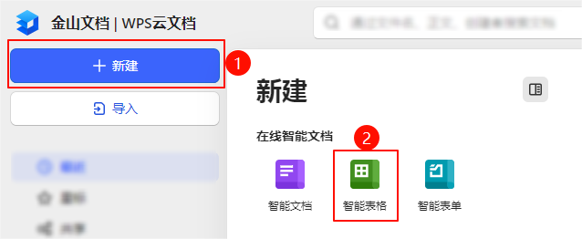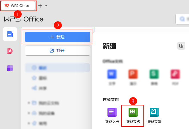 操作路径:WPS → 首页 → 新建 → 智能表格。