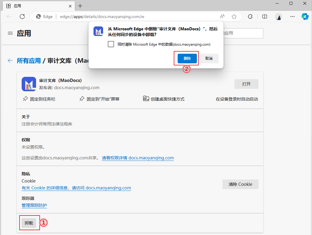 Microsoft Edge 浏览器 与 Google Chrome 浏览器 的卸载步骤类似,操作界面略有不同,详见下文教程。(1) → 应用设置;
