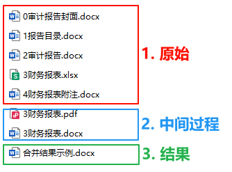 合并文件:将多个 Word 文档和 Excel 工作簿为一个 Word 文档 2024-7-31 9:01 | 2,034 | 0 | 其他软件教程 89 字 | 1 分钟内 1. 需求描述 如何将多个 Word 文档和 Excel 工作簿为一个 Word 文档? 举例如下: 2. 操作步骤 步骤1、Excel 另存为 PDF:点击查看 步骤2、PDF 转换为 Word:点击查看 步骤3、合并 Word:点击查看 3. 结果示例 赞赏