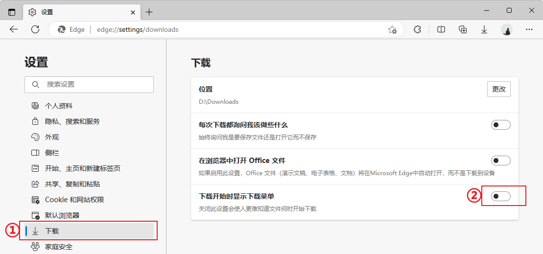 2.2. (按需)关闭“下载开始时显示下载菜单”