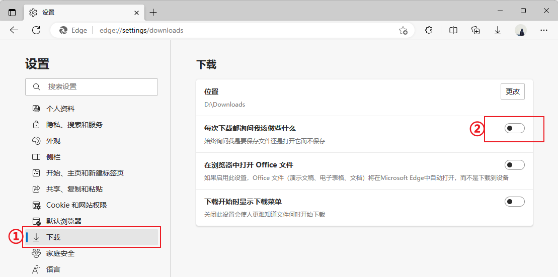 2.1. (推荐)关闭“每次下载都询问我该做些什么”