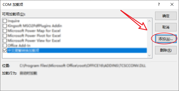 若列表中不存在您所需要的加载项,可通过如下方式添加: