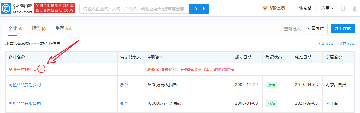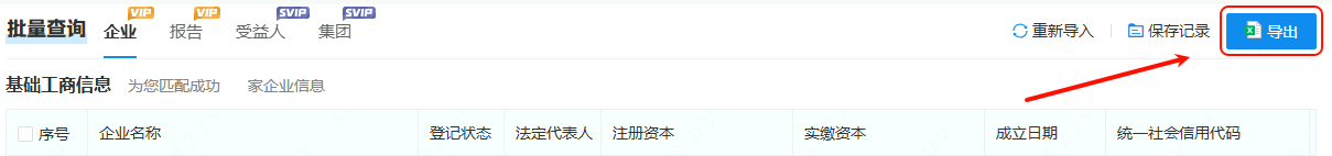 | 1 | 基础工商信息导出 | VIP/SVIP | 基础工商信息 |