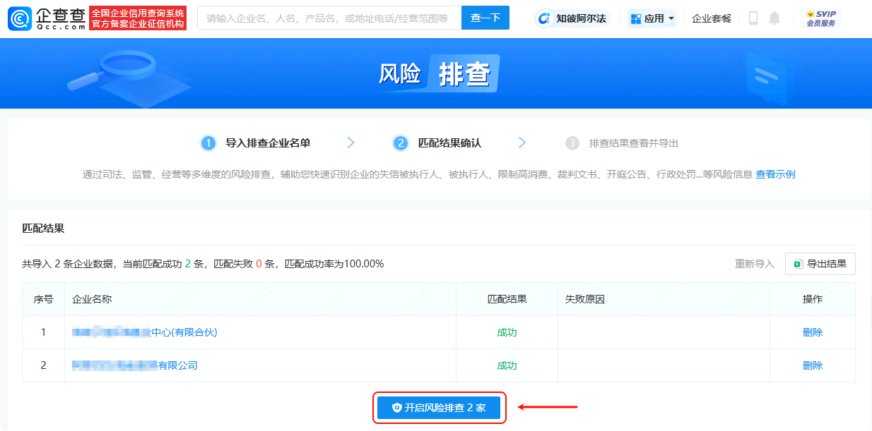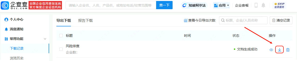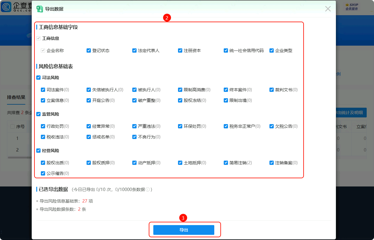 企查查的【风险排查】模块,可以批量查询并导出以下信息(Excel版):