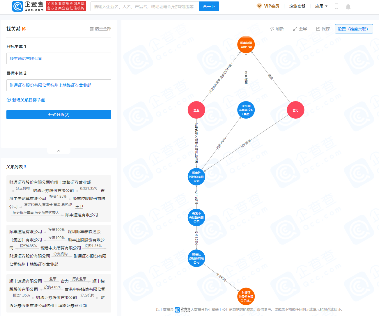 企查查默认按照法定代表人、董监高、股东等信息进行分析所查询的目标主体之间的关系。