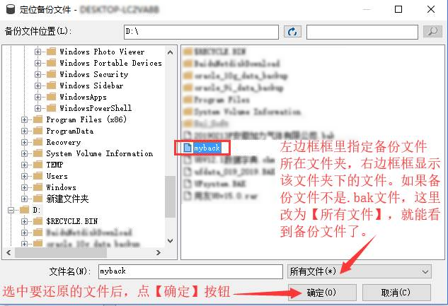 (10)选择拟还原的备份文件 → 确定