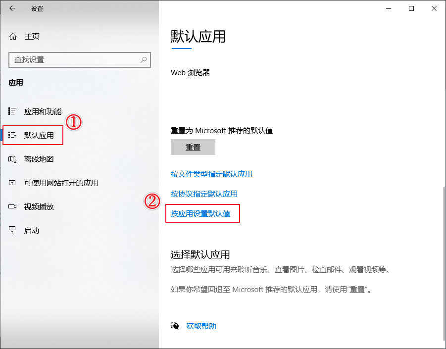 Windows 设置(快捷键:Win + I) → 应用 → 默认应用 → 按应用设置默认值。