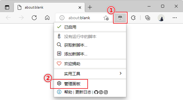 2.1.1. 打开 Tampermonkey 管理面板