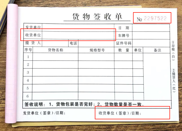 要求:批量拆分《货物签收单》PDF扫描件,一页一个PDF文件,并将拆分后的PDF文件,按照“①货物签收单单号+②收货单位+③收货日期”格式重命名,相关信息所在位置固定,如下: