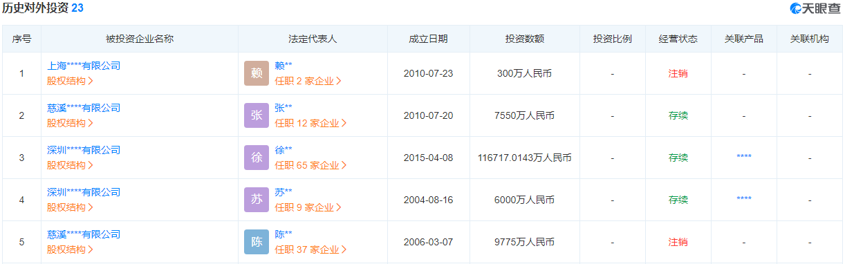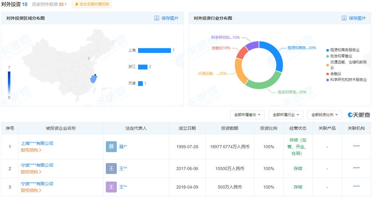 整理第三方工商信息系统导出的对外投资、历史对外投资、控制企业、间接持股企业等信息,包括但不限于: