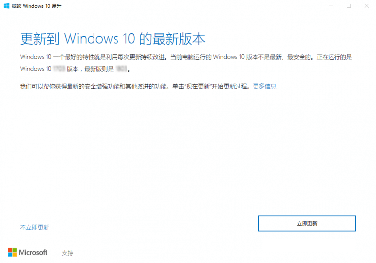 (3)点击立即更新,将系统更新到 Windows 10 的最新版本