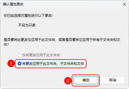1.3. 步骤3:将更改应用于此文件夹、子文件夹和文件