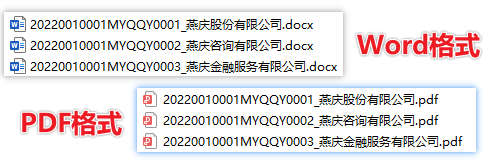 默认命名规则为:序号_新文档名.docx/pdf;针对RC函证系统生成的询证函,有特殊适配,会自动将序号换成函证编号,如下图所示: