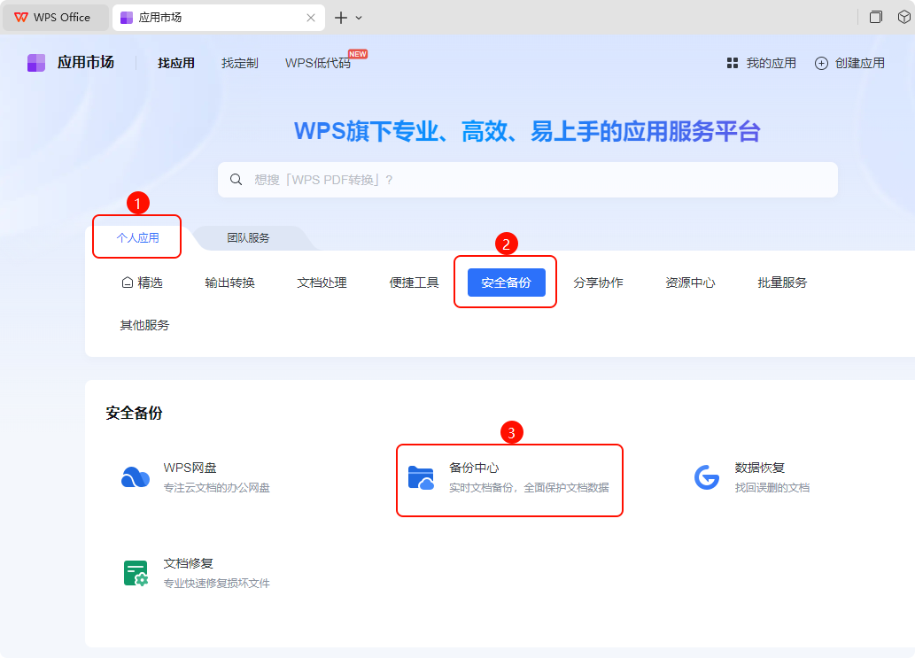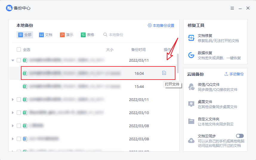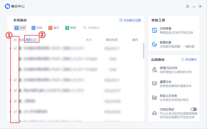WPS备份中心,实时文档备份,全面保护文档数据。其支持的文档格式包括: