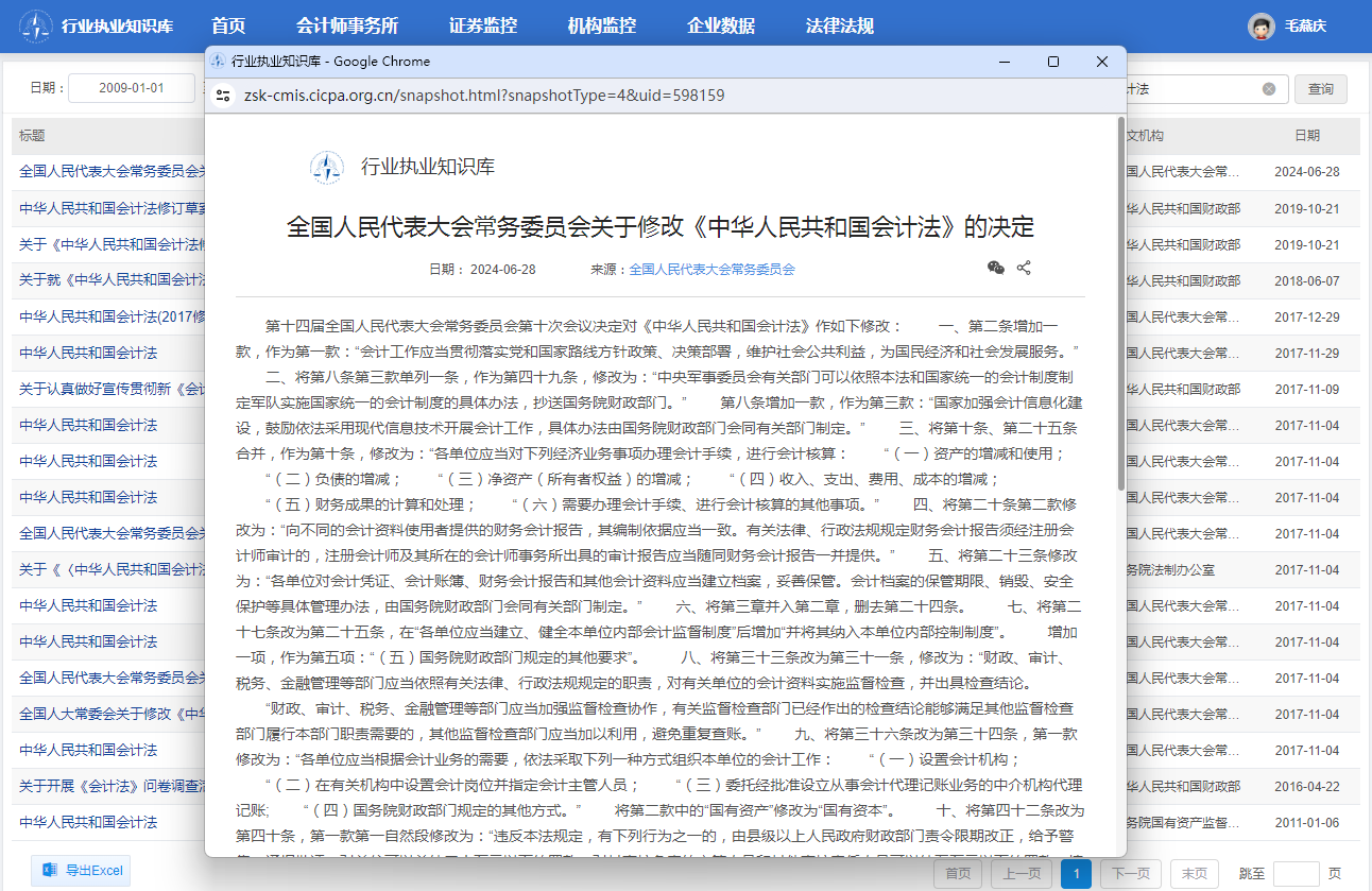 因优化服务,注册会计师行业法律法规库(https://cicpa.wkinfo.com.cn/)将于2024年7月20日停用。本服务停止后,将下线中注协门户网站的“法律法规库”栏目,并注销“注册会计师行业法律法规库”微信公众号。
